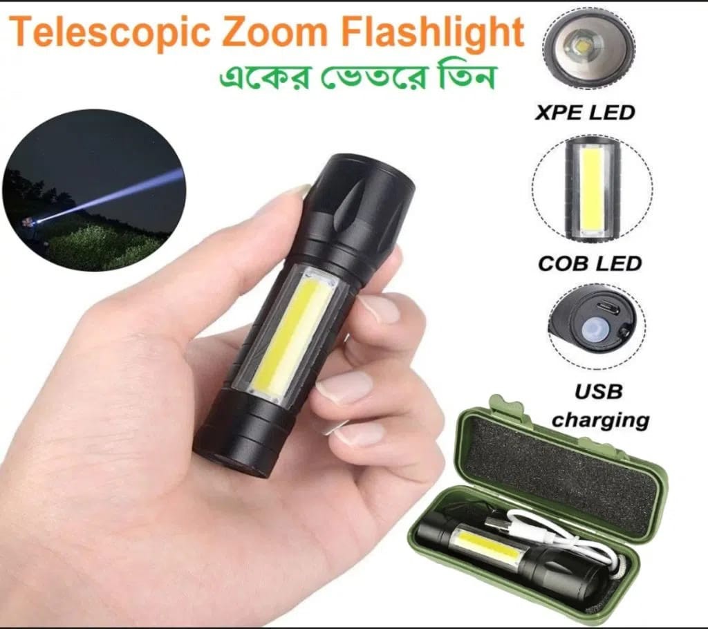 রিচার্জেবল মিনি ফ্ল্যাশ টর্চ লাইট টেলিস্কোপিক জুম ফ্ল্যাশ লাইট
