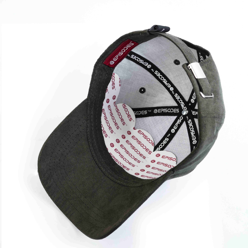 Introducing the Episodes Olive Suede Cap, a refined and sophisticated addition to your everyday wardrobe. Crafted from luxurious olive suede fabric, this high-quality cap combines elegance with a modern touch. The intricately embroidered Episodes logo on the front adds a unique touch of distinction and style.