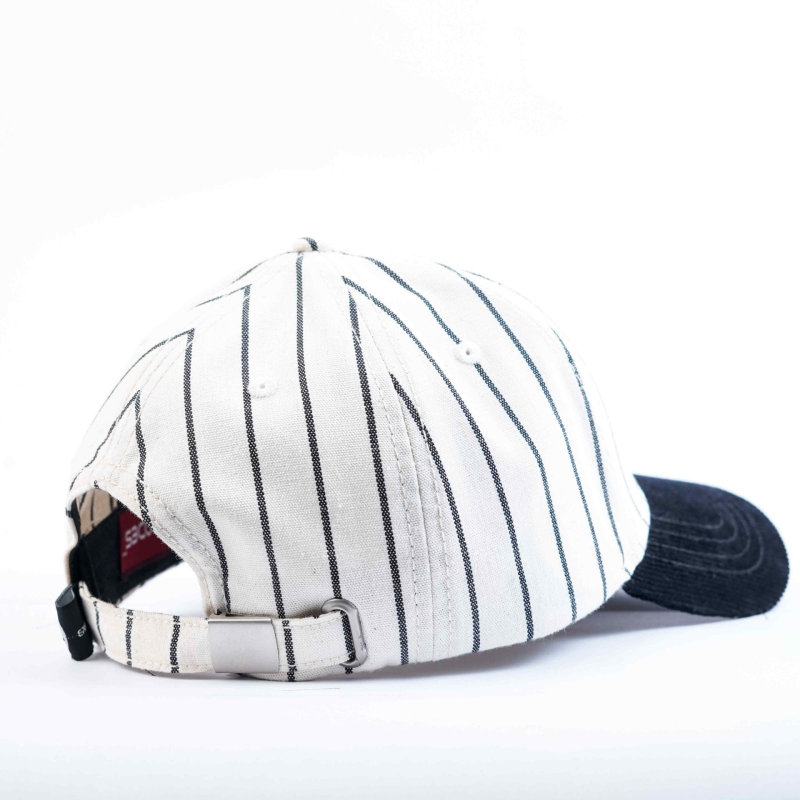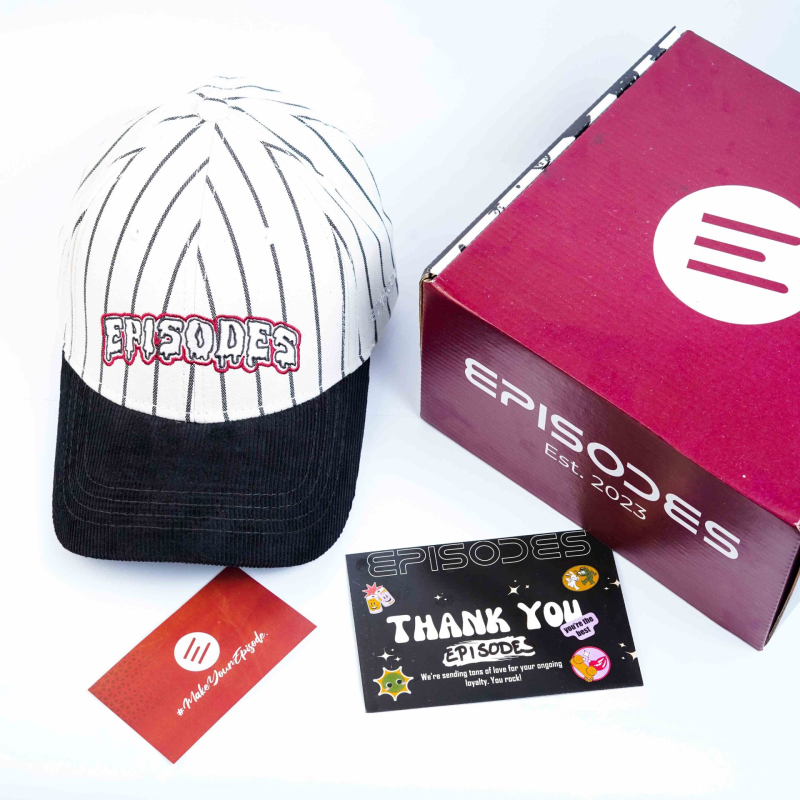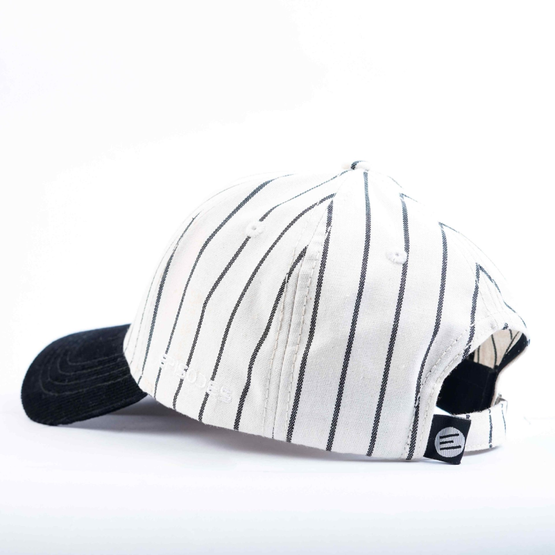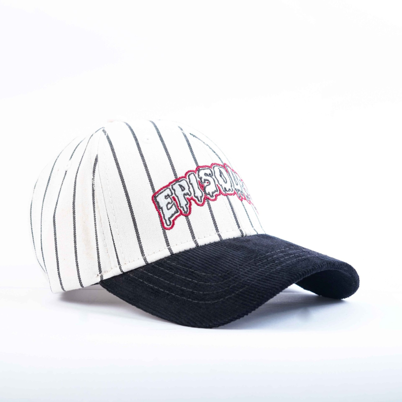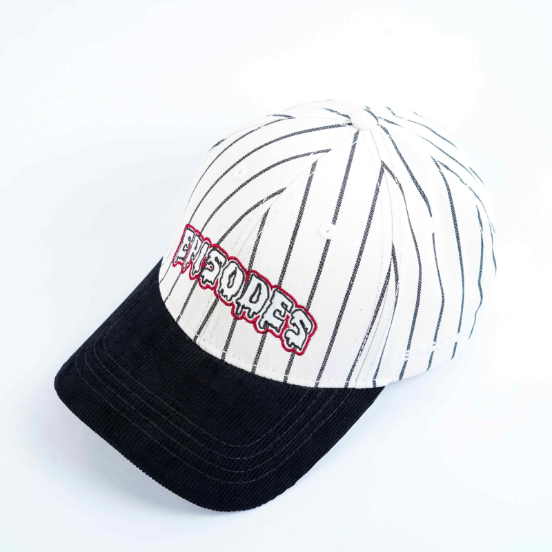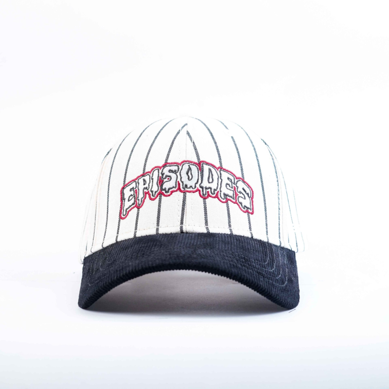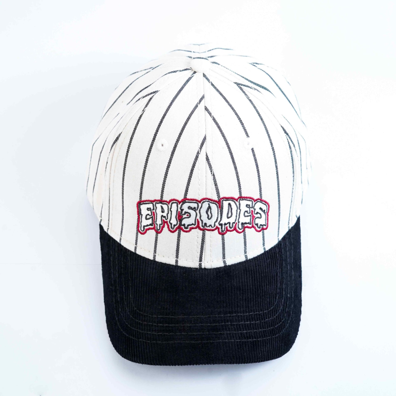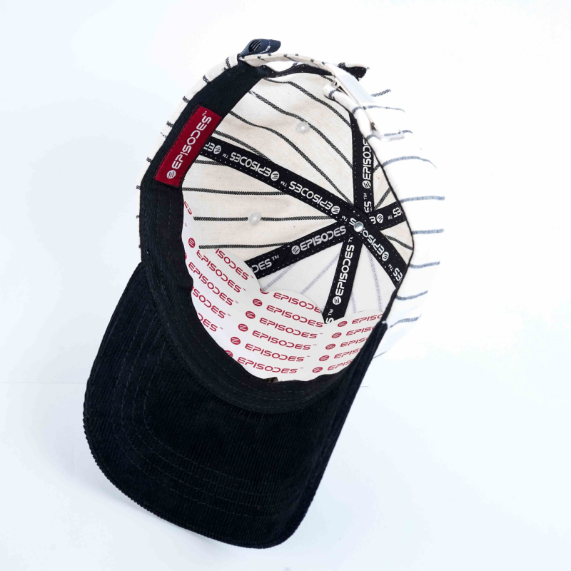 Introducing ‘Episodes’ Streetwear cap blending classic twill fabric with premium corduroy, presenting a timeless fusion of style and comfort. The White Stripe body offers a clean, modern aesthetic, while the black corduroy visor adds a touch of sophistication. Adorned with a high-quality embroidered “Episodes” design on the front, this cap exudes individuality and flair. With its curved visor providing a traditional fit, it’s the perfect accessory for elevating any ensemble, whether you’re hitting the streets or kicking back in style.