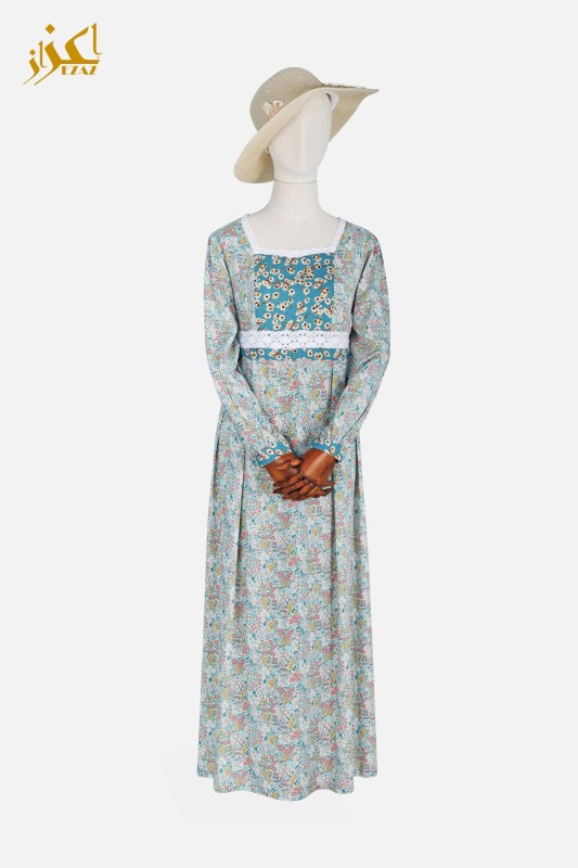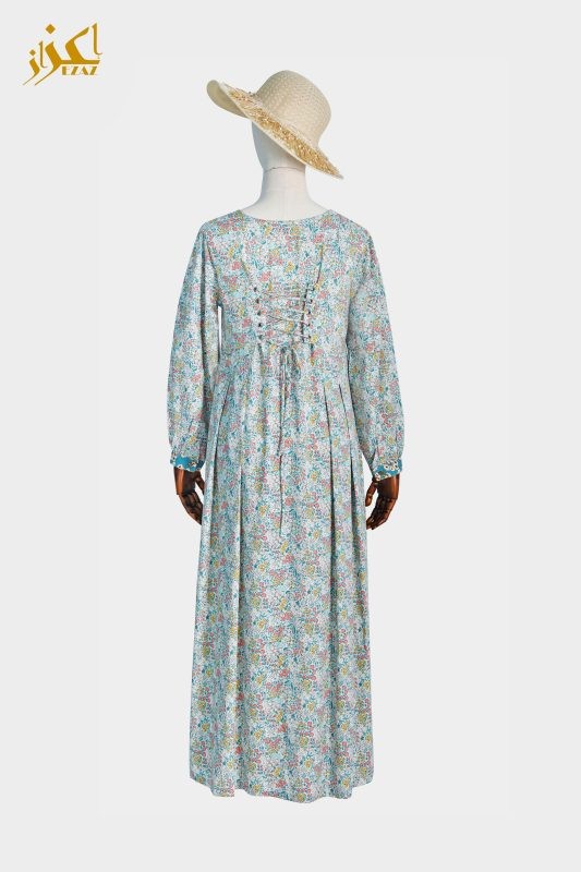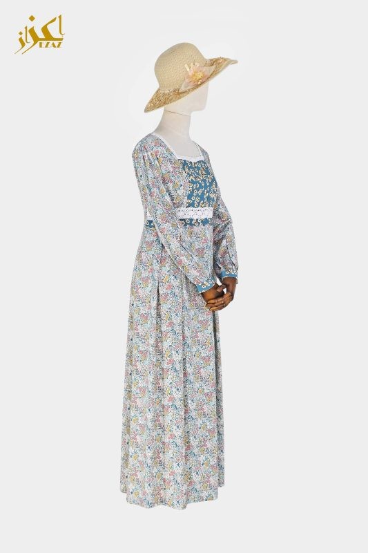 The Mystic Flora Gown is a beautifully designed dress crafted from soft and breathable fabric. The soothing blue-toned background is decorated with delicate daisy prints, offering a fresh and serene look. The front features elegant lace and contrasting fabric details, enhancing its overall appeal. With snap button sleeves for convenience and an adjustable cross-back strap for a perfect fit, this dress is ideal for both casual and special occasions.