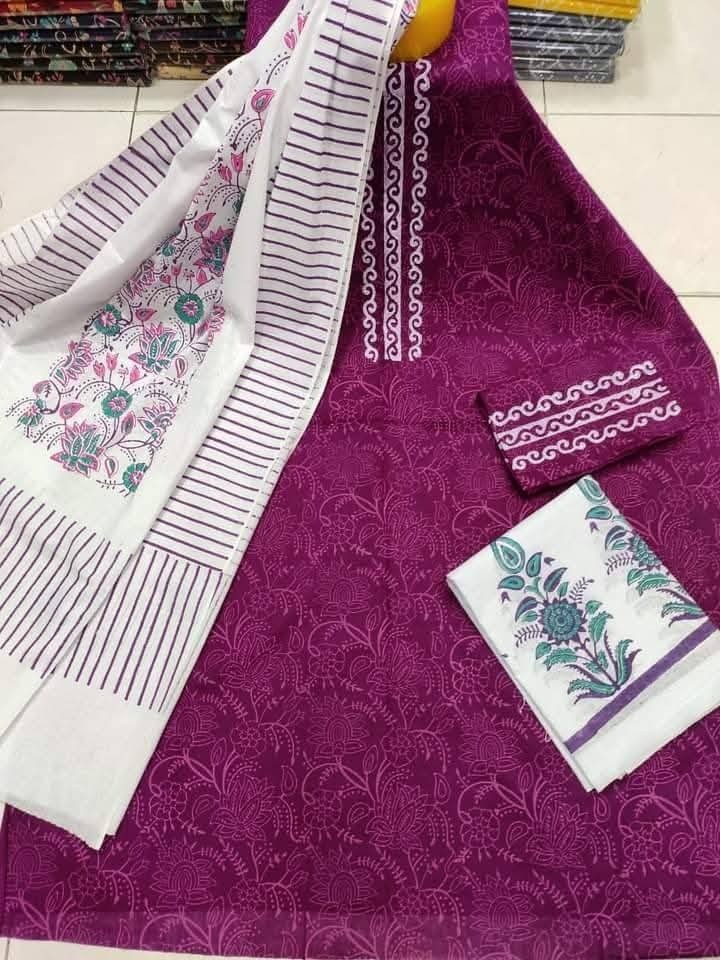 Product details of New Unstitched High Quality Cotton Block Print Three Piece For Women