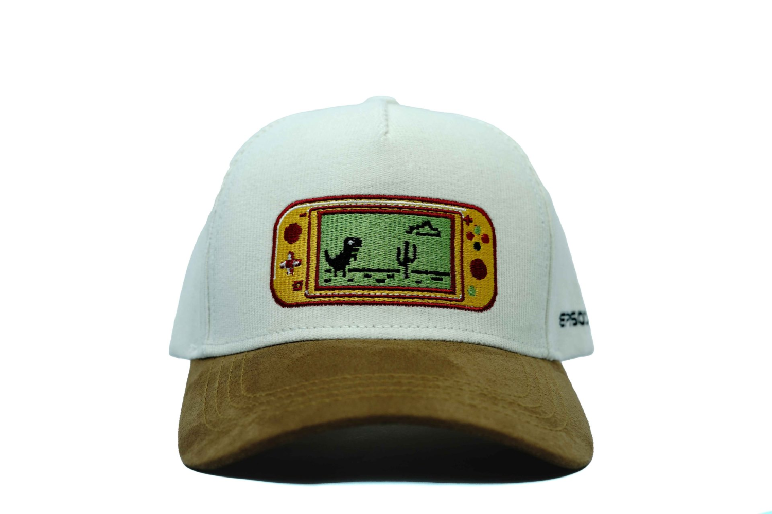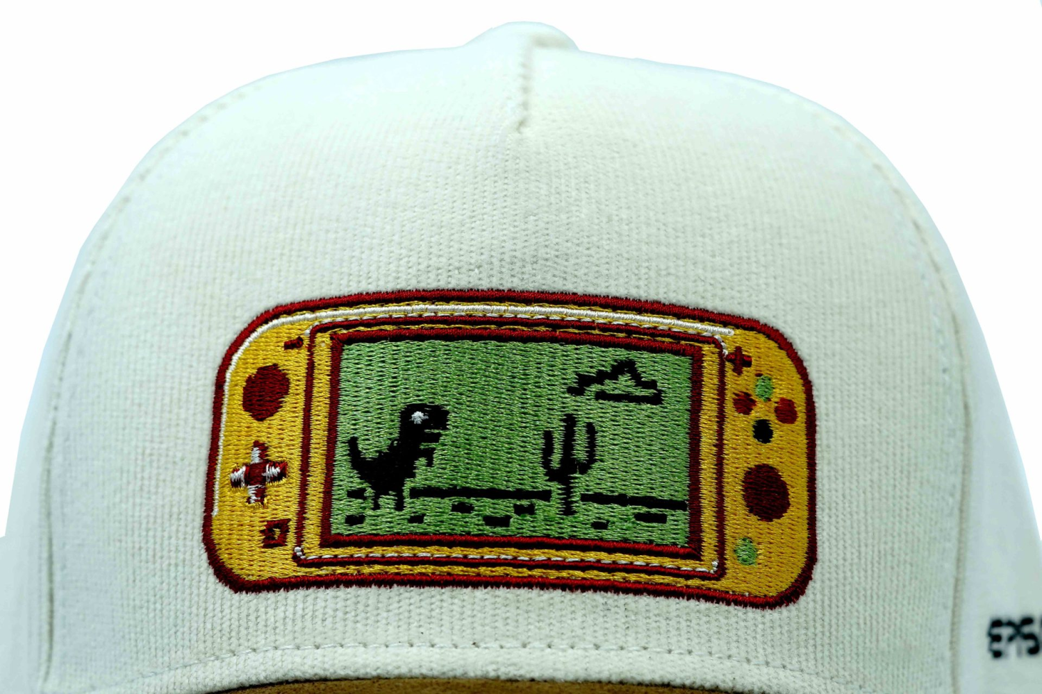 The Nintendo-designed cap from Episodes’ Gaming EP collection features a sleek 5-panel shape made from premium sweat leather and corduroy fabric. Its exclusive design draws inspiration from iconic gaming elements, offering a stylish and nostalgic look perfect for gaming enthusiasts. This playful cap features a nostalgic pixelated dinosaur game design, perfect for retro enthusiasts and gaming fans.